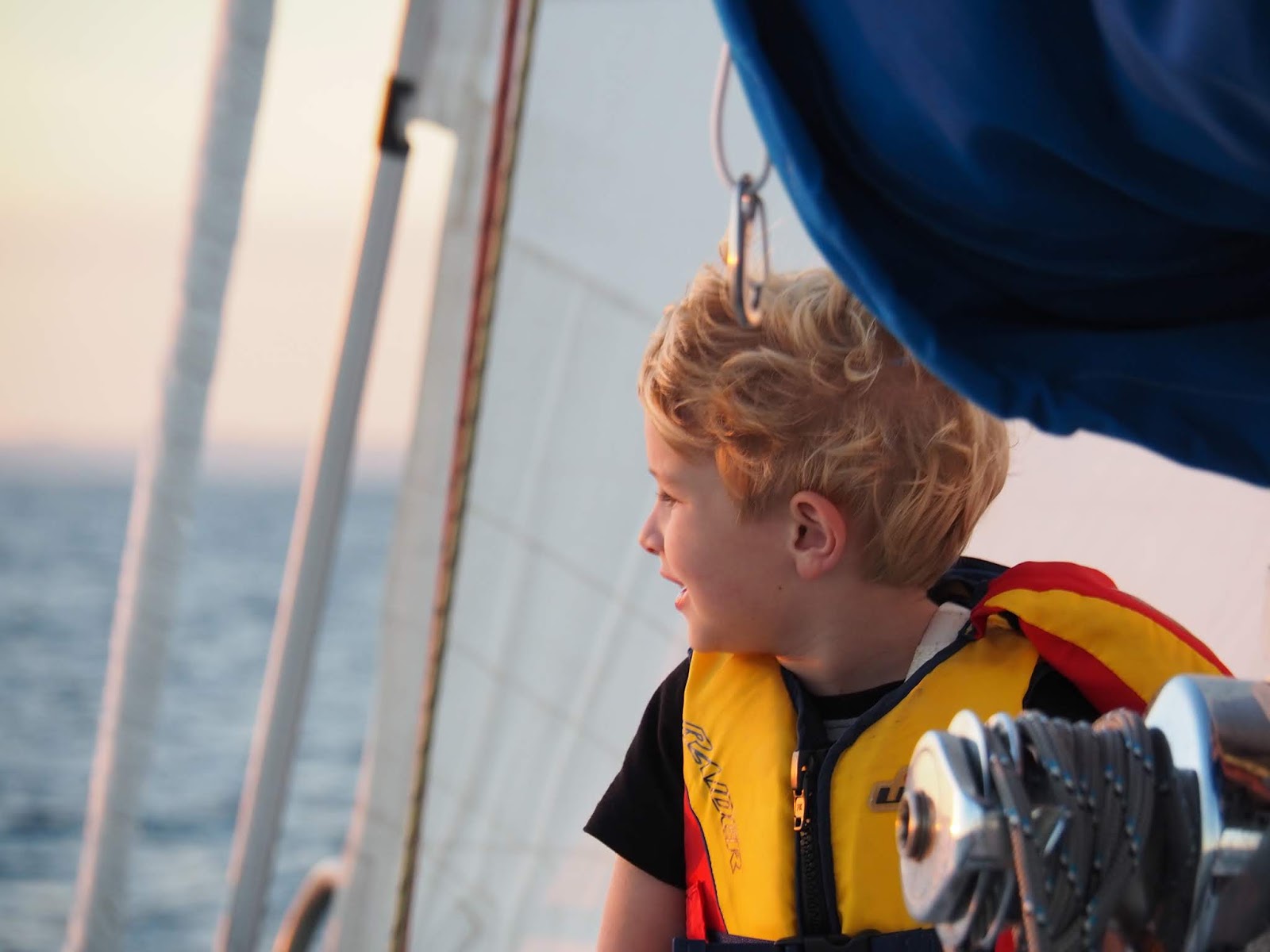 Although Mia had a rough start to the trip, as the wind decreased so did the chop and with some drugs and a little distraction she improved as the day went on. Joel took to it like an old hand, running around, swinging, checking ships through the binoculars and showing no fear and enjoying himself thoroughly.